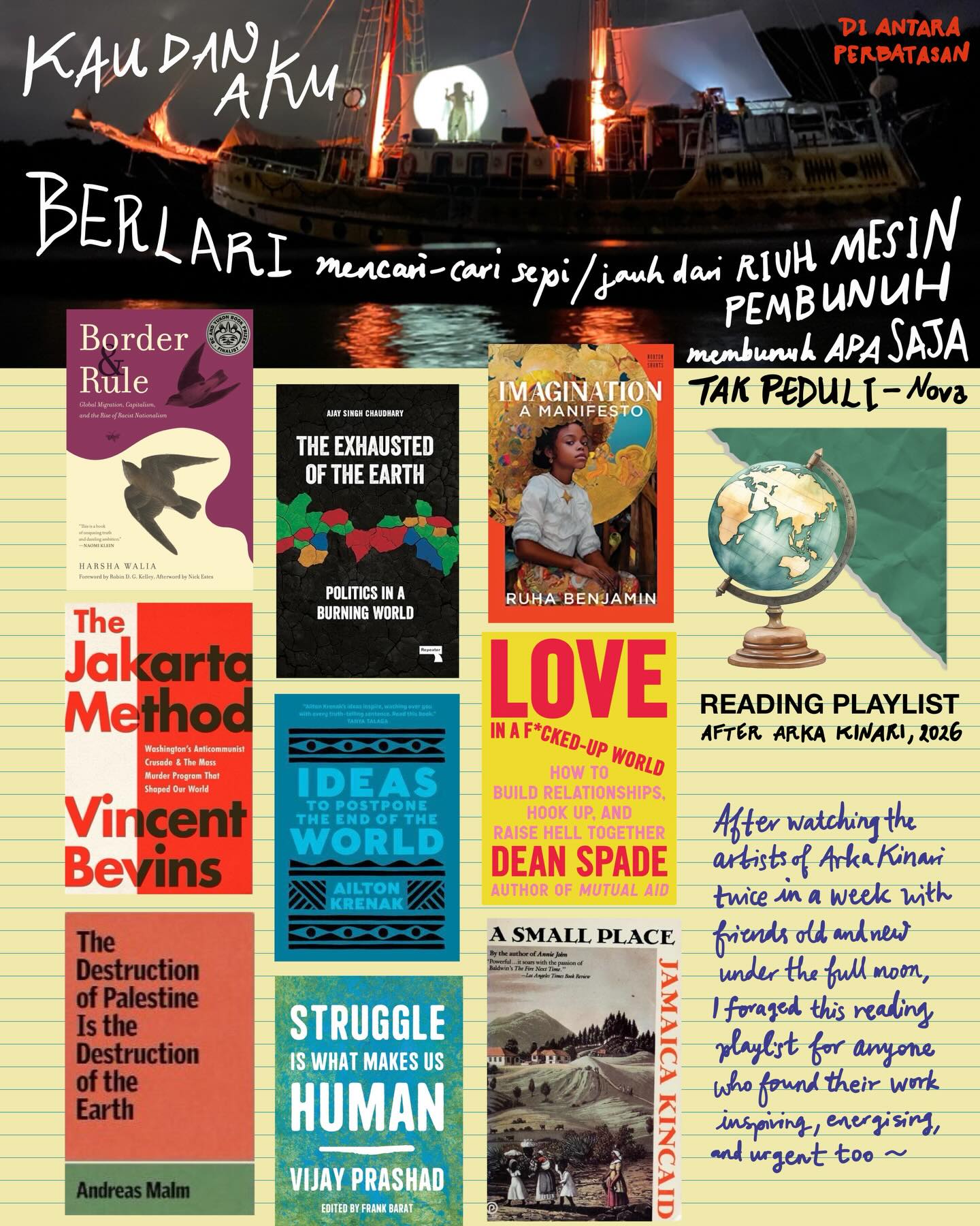 On the first full moon of the year I was with friends old and new, watching a performance by artists Nova and Filastine of the cultural sailing ship Arka Kinari. I foraged this reading playlist for anyone who also found their work inspiring, energising, and urgent.